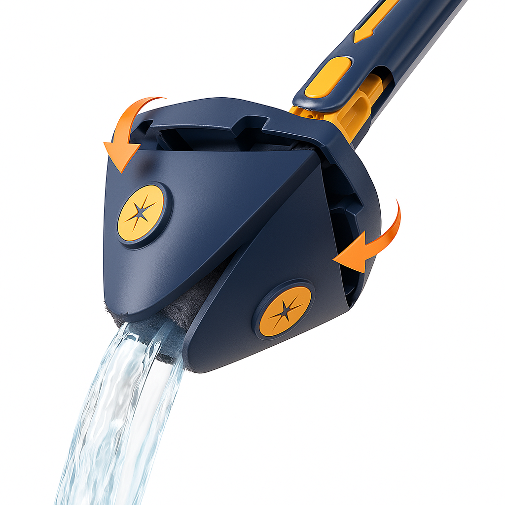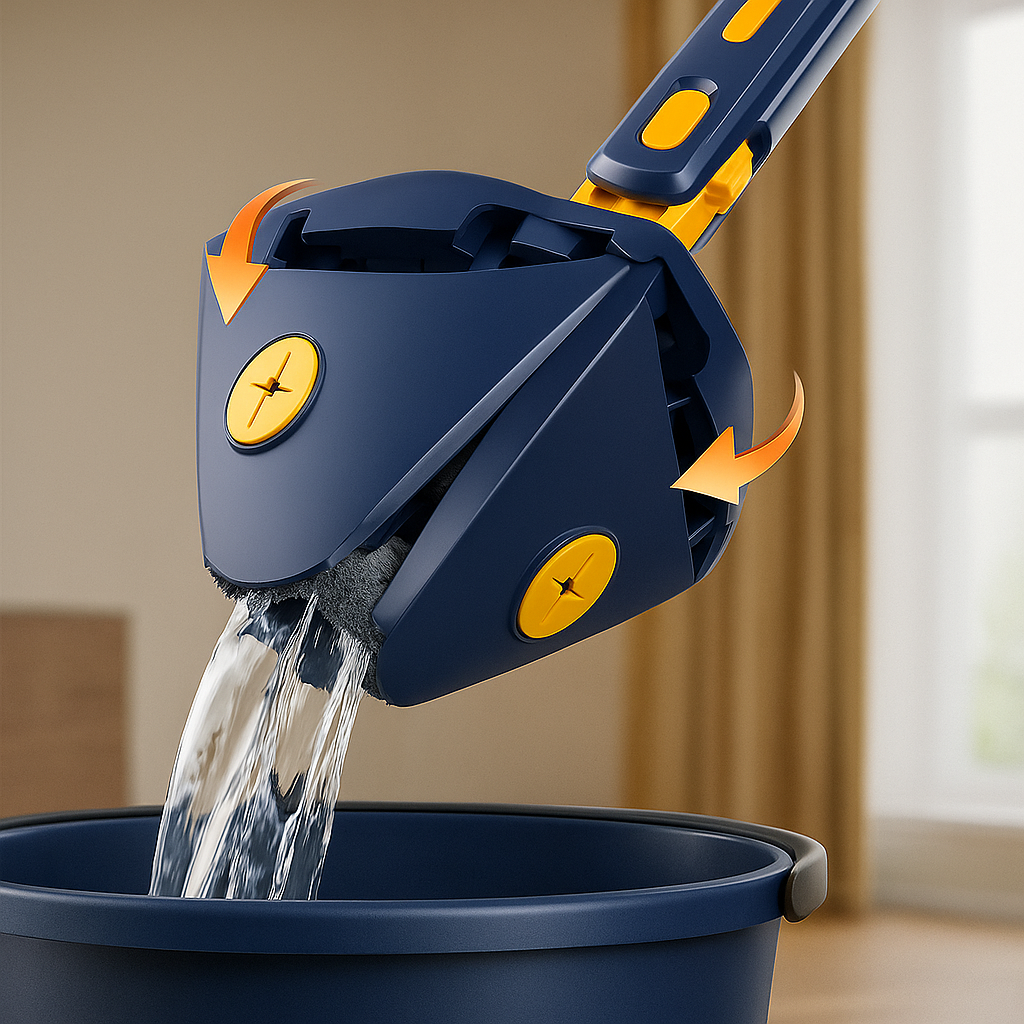 Olvídate de agacharte, mojarte las manos o dejar rincones sin limpiar. La fregona telescópica Essen combina un mango extensible con un cabezal 360° flexible, función autoescurrible y almohadillas de microfibra reutilizables, para que limpies más rápido, cómodo y en profundidad.