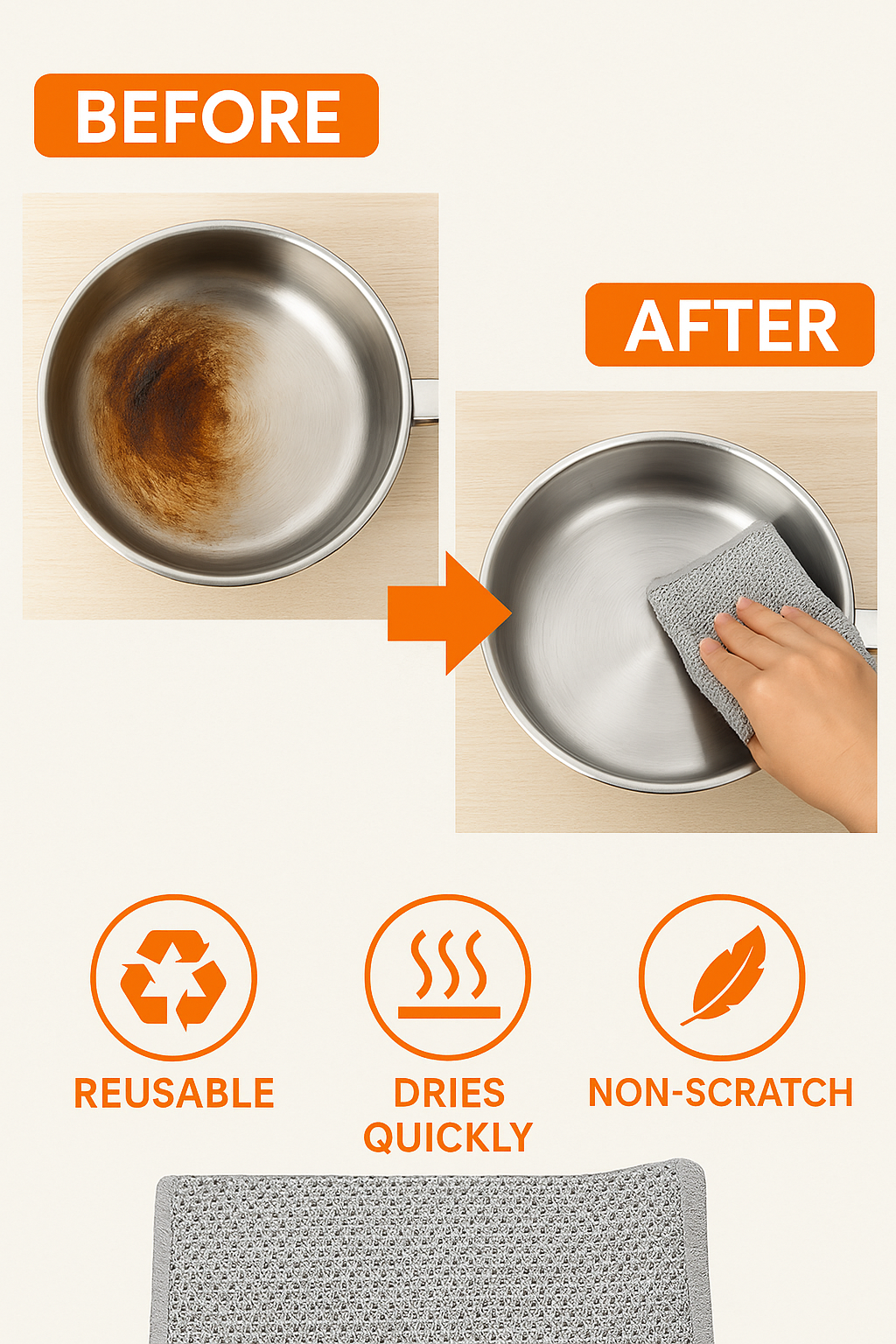 ¿Cansado de frotar sin resultados, de los rayones al limpiar ollas u hornos, y de que los estropajos se deterioren al primer uso? Con el pack Essen de PAÑOS DE LIMPIEZA DE MALLA (5 + 10 gratis) descubrirás cómo limpiar rápido, sin esfuerzo, y con resultados brillantes.
